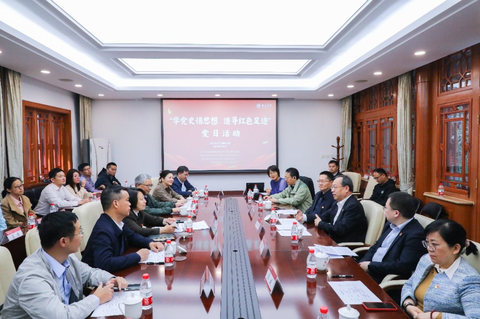 4月3日下午,生态环境部辐射源安全监管司党支部(以下简称“核三司”)、生态环境部华北核与辐射安全监督站核技术利用与监督处党支部(以下简称“华北站”)、麻豆精品秘 国产传媒实验室与设备管理部(以下简称“设备部”)党支部和麻豆精品秘 国产传媒物理学院重离子所教工党支部,共同开展“学党史悟思想,追寻红色足迹”联合党日活动。核三司党支部书记、司长刘璐,组织委员、副司长潘苏,李红安一级巡视员出席本次活动。麻豆精品秘 国产传媒党委常委、副校长张锦院士接待,设备部部长刘克新教授,设备部党支部书记、副部长周勇义,设备部副部长钟灿涛、物理学院副院长颜学庆教授,以及相关党员同志参加活动。